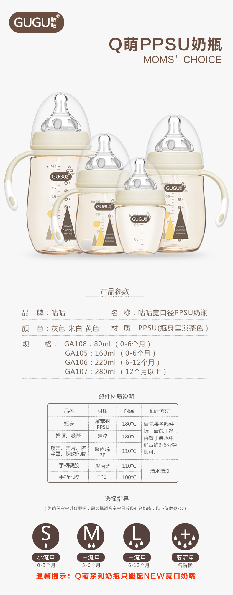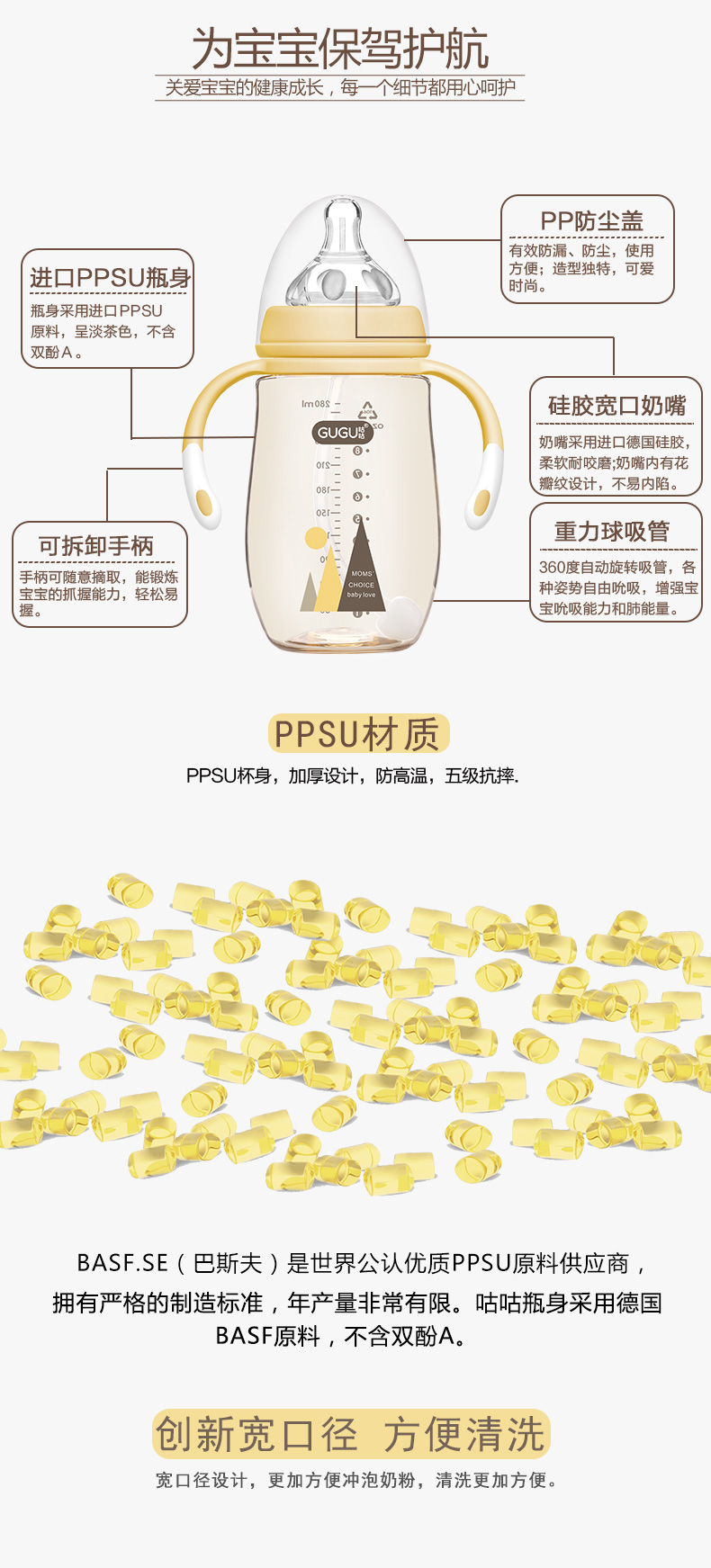 顏 色:都市灰/典雅黃/簡約白 材 質:PPSU(奶瓶瓶身呈淡茶色)